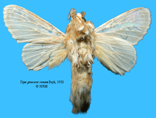 ![]() Titya synoecura romani Bryk, 1953. Reference: Bryk, F. 1953, Lepidoptera aus dem Amazonasgebiete und aus Peru gesammelt von Dr. Douglas Melin und Dr. Abraham Roman. - Arkiv för Zoologi Band 5 nr. 1, Almqvist & Wiksell Boktryckeri, Uppsala. 268 pp. Return to species-list. |