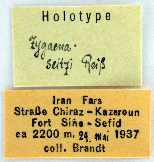 Reference: Reiss, H. 1938, Die Zygaenen der Umgebung von Chirz (Provinz Fars) in Südiran. - Entomologische Rundschau, Jahrgang 55, Stuttgart, p. 291.
