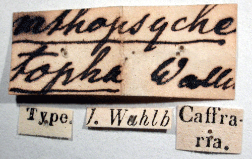 ![]() Anthopsyche topha Wallengren, 1860. Reference: Wallengren, H.D.J. 1860, Lepidopterologische Mittheilungen. - Wiener Entomologische Monatschrift Band IV Nr. 2, Karl Ueberreuter, Alservorstadt. pp 33-46. Return to species-list. |