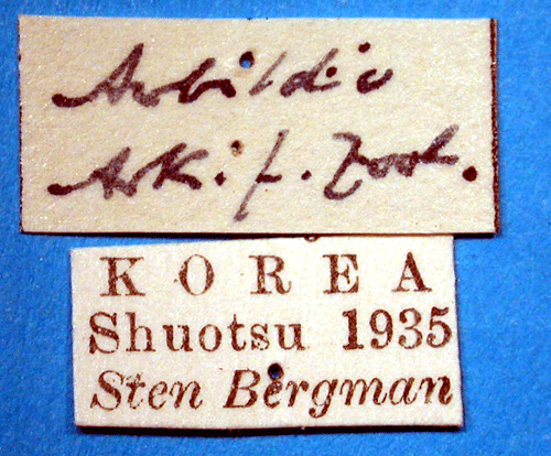 ![]() Baptria tibiale pedicura Bryk, 1948. Reference: Bryk, F. 1948, Zur Kenntnis der Großschmetterlinge von Korea. Pars II. Macrofrenatae II (finis): Notodontidae, Lymantriidae, Saturniidae, Brahmaeidae, Drepanidae, Epiplemidae, Lasiocampidae, Arctiidae, Thyatiridae, Noctuidae, Geometridae. Heteroneura: Fam.: Cochlifiidae, Zygaenidae. Tineoidea: Fam.: Cossidae, Psychidae. Mit 7 Tafeln. - Arkiv för Zoologi Band 41 A nr. 1, Almqvist & Wiksell Boktryckeri, Uppsala. 1 - 225 pp. Return to species-list. |