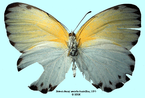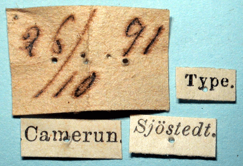 Reference: Aurivillius, C. 1895, Beiträge zur Kenntniss der Insektenfauna von Kamerun 2. Tagfalter. - Entomologisk tidskrift vol 16, Iduns Kongl. Hofboktryckeri, Stockholm. pp. 255-268.