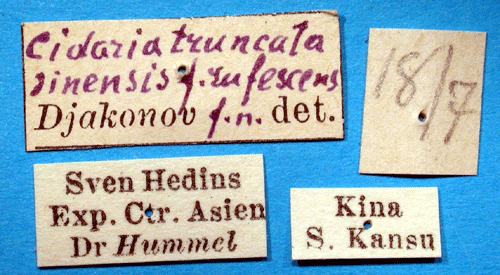 Reference: Djakonov, A. 1936, Swedish-chinesische wissenschaftliche Expedition nach den nordwestlichen Provinzen Chinas, unter Leitung von Dr. Sven Hedin und Prof. Sü Ping-chang. Insekten. gesammelt vom schwedischen Arzt der Expedition Dr. David Hummel 1927-1930. 57. Lepidoptera 5. Geometridae. - Arkiv för Zoologi Band 27 A nr. 32. Almqvist & Wiksells Boktryckeri AB, Uppsala. pp. 1-67.