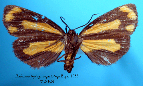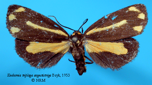 ![]() Eudesmia triplaga angustistriga Bryk, 1953. Reference: Bryk, F. 1953, Lepidoptera aus dem Amazonasgebiete und aus Peru gesammelt von Dr. Douglas Melin und Dr. Abraham Roman. - Arkiv för Zoologi Band 5 nr. 1, Almqvist & Wiksell Boktryckeri, Uppsala. 268 pp. Return to species-list. |