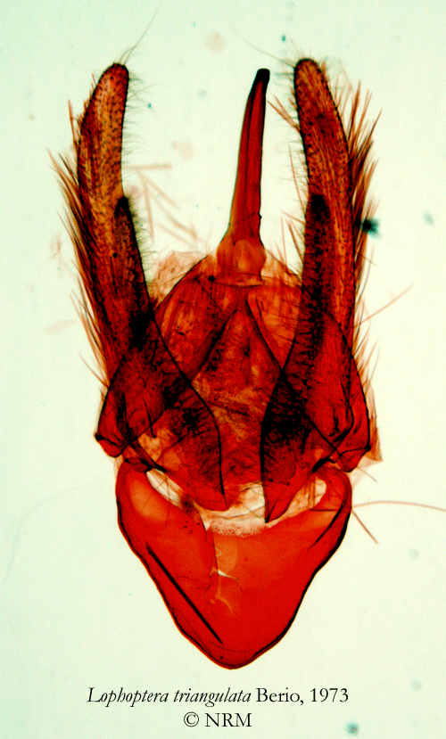 Lophoptera triangulata Berio, 1973. Reference: Berio, E. 1973, Nuove specie e generi di Noctuidae Africane e Asiatiche e note sinonimiche, Parte II. - Annali del Museo Civico di Storia Naturale "Giacomo Doria" Vol. 79, Genova. pp. 126-171. Return to species-list. |