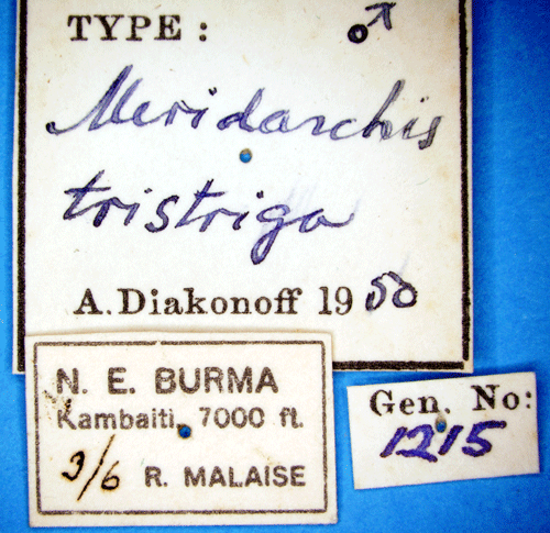 Reference: Diakonoff, A. 1951, Entomological results from the Swedish Expedition 1934 to Burma and British India. Lepidoptera, Collected by René Malaise, Microlepidoptera I. With 1 map and 35 figures in the text. - Arkiv för Zoologi Band 3 nr. 6, Almqvist & Wiksell Boktryckeri, Uppsala. 59 - 94 pp.