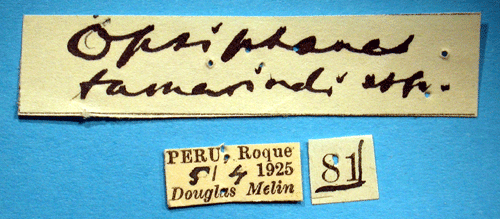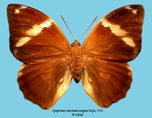 ![]() Opsiphanes tamarindi douglasi Bryk, 1953. Reference: Bryk, F. 1953, Lepidoptera aus dem Amazonasgebiete und aus Peru gesammelt von Dr. Douglas Melin und Dr. Abraham Roman. - Arkiv för Zoologi Band 5 nr. 1, Almqvist & Wiksell Boktryckeri, Uppsala. 268 pp. Return to species-list. |