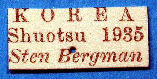Reference: Bryk, F. 1948, Zur Kenntnis der Großschmetterlinge von Korea. Pars II. Macrofrenatae II (finis): Notodontidae, Lymantriidae, Saturniidae, Brahmaeidae, Drepanidae, Epiplemidae, Lasiocampidae, Arctiidae, Thyatiridae, Noctuidae, Geometridae. Heteroneura: Fam.: Cochlifiidae, Zygaenidae. Tineoidea: Fam.: Cossidae, Psychidae. Mit 7 Tafeln. - Arkiv för Zoologi Band 41 A nr. 1, Almqvist & Wiksell Boktryckeri, Uppsala. 1 - 225 pp.