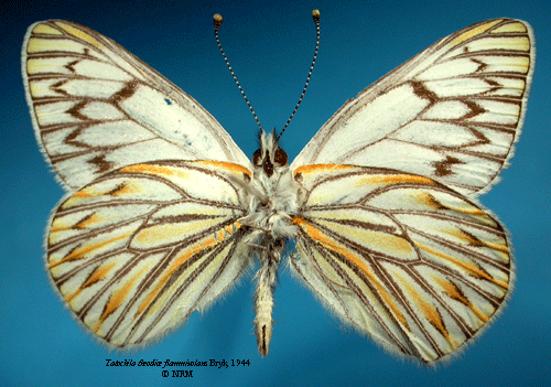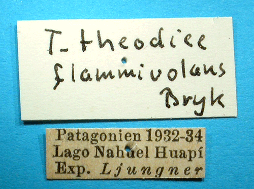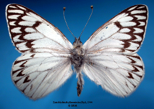 ![]() Tatochila theodice flammivolans Bryk, 1944. Reference: Bryk, F. 1944, Über die Schmetterlingsausbeute der Schwedischen wissenschaftlichen Expedition nach Patagonien 1932/1934. Report Number 11 from the Ljungner Expedition 1932/1934. Mit 2 Tafeln. - Arkiv för Zoologi Band 36 A nr. 3, Almqvist & Wiksell Boktryckeri, Uppsala. 1 - 30 pp. Return to species-list. |