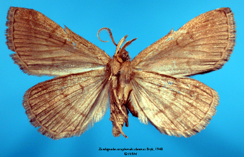 ![]() Zanclognatha tarsiplumalis chosensis Bryk, 1948. Reference: Bryk, F. 1948, Zur Kenntnis der Großschmetterlinge von Korea. Pars II. Macrofrenatae II (finis): Notodontidae, Lymantriidae, Saturniidae, Brahmaeidae, Drepanidae, Epiplemidae, Lasiocampidae, Arctiidae, Thyatiridae, Noctuidae, Geometridae. Heteroneura: Fam.: Cochlifiidae, Zygaenidae. Tineoidea: Fam.: Cossidae, Psychidae. Mit 7 Tafeln. - Arkiv för Zoologi Band 41 A nr. 1, Almqvist & Wiksell Boktryckeri, Uppsala. 1 - 225 pp. Return to species-list. |