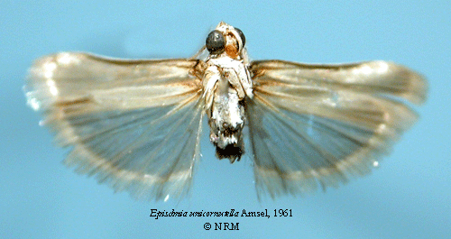 Epischnia unicornutella Amsel, 1961. Reference: Amsel, H.G. 1961, Die Microlepidopteren der Brandt'schen Iran-Ausbeute 5. Teil. - Arkiv för Zoologi Band 13 nr. 17, Almqvist & Wiksells Boktryckeri AB, Uppsala. pp. 323-445 Mit 263 Abbildungen. Return to species-list. |
