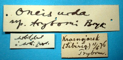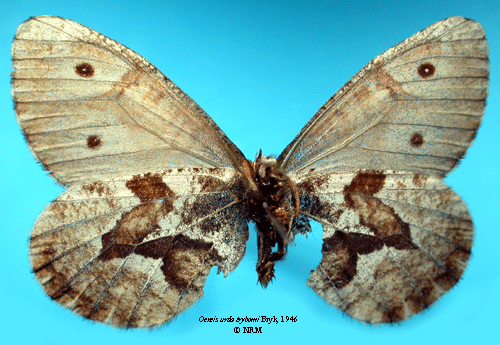 ![]() Oeneis urda trybomi Bryk, 1946. Reference: Bryk, F. 1946, Zur Kenntnis der Großschmetterlinge von Korea. Pars I. Rhopalocera, Hesperiodea et Macrofrenatae I Sphingidae. Mit 5 Tafeln und 1 Karte. - Arkiv för Zoologi Band 38 A nr. 3, Almqvist & Wiksell Boktryckeri, Uppsala. 1 - 74 pp. Return to species-list. |