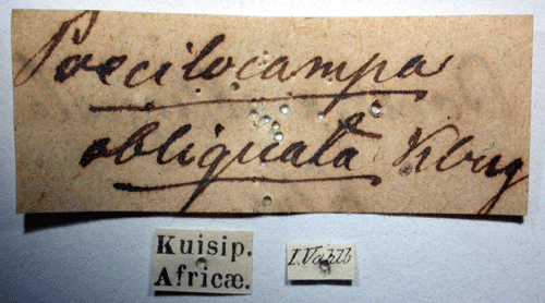 Reference: Aurivillius, C. 1892, Verzeichniss einer von herrn Fritz Theorin aus Gabun und dem gebiete des Camerunflusses heimgebrachten Schmetterlingssammlung, II Heterocera. - Entomologisk tidskrift vol 13, Gernandts Boktryckeri AB, Stockholm. pp. 181-200.