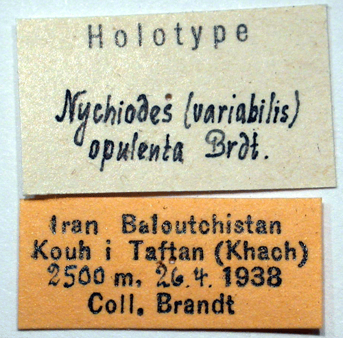 Nychiodes variabila opulenta Brandt, 1941. Reference: Brandt, W. 1941, Beitrag zur Lepidopteren-Fauna von Iran (4). Einige neue Geometriden. - Mitteilungen der Münchner Entomologischen Gesellschaft 31, München. pp. 864-886. Return to species-list. |