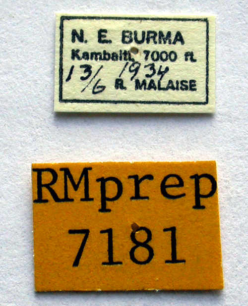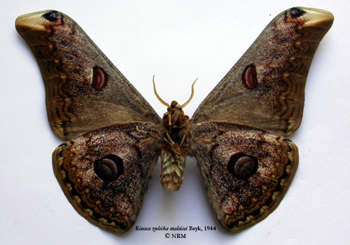 ![]() Rinaca zuleika malaisei Bryk, 1944. Reference: Bryk, F. 1944, Entomological Resuls from the Swedish Expedition 1934 to Burma and British India. Lepidoptera: Saturniidae, Bombycidae, Eupterotidae, Uranidae, Epiplemidaeund Sphingidae. Mit 6 Tafeln und 1 Karte. - Arkiv för Zoologi Band 35 A nr. 8, Almqvist & Wiksell Boktryckeri, Uppsala. 1 - 55 pp. Return to species-list. |
